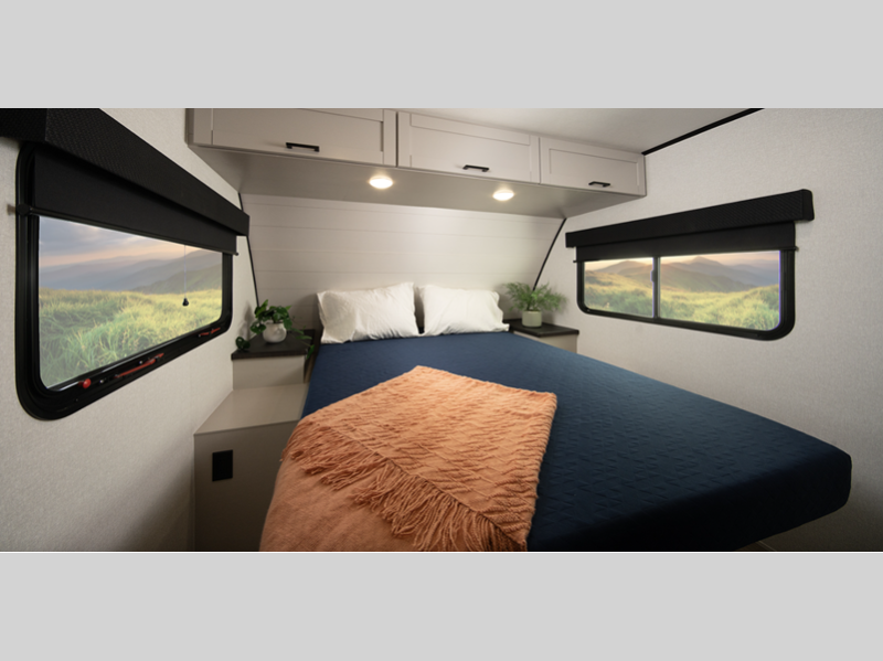 Sleeps 2 Slides 2 Length 26 ft 6 in Ext Width 8 ft Ext Height 10 ft 8 in Int Height 6 ft 6 in Interior Color Dune Gray Hitch Weight 785 lbs GVWR 7500 lbs Dry Weight 5855 lbs Cargo Capacity 1645 lbs Fresh Water Capacity 55 gals Grey Water Capacity 76 gals Black Water Capacity 38 gals Tire Size ST205/75R14D Available Beds Queen Refrigerator Type 12V Refrigerator Size 11 cu ft Cooktop Burners 3 Number of Awnings 1 LP Tank Capacity 20 lbs. Water Heater Type On Demand AC BTU 13500 btu TV Info LED Smart TV Awning Info 16' Max-Length Power w/LED Light Axle Count 2 Number of LP Tanks 2 Shower Type Radius Electrical Service 30 amp Solar Wattage 200 watts Similar Floorplans
