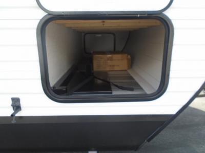 It's time to ditch that old tent and upgrade to this spacious travel trailer! The littles ones or your guests will love the double-size bunks with steps in the back, while you take the front master bedroom. One of the dual entry doors is also found here for convenience, and the walk-through bath is easily accessible for everyone. A U-shaped dinette slide and jack-knife sofa in the main living area provide your crew with space to relax and dine together, and the fully equipped kitchen lets you cook up your best meals. This unit includes ample storage space, including additional kitchen storage, wardrobes, overhead cabinets, and exterior storage!