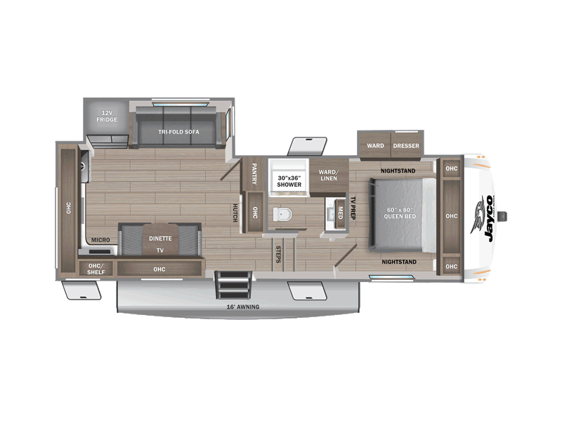 The Jayco Eagle SLE fifth Wheels offers a variety of thoughtfully designed floorplans that deliver a perfect blend of comfort, convenience and versatility. With layouts ranging from 29' 3" to 34' 8", each floorplan is crafted to suit your unique needs, whether you're embarking on a weekend getaway or a long road trip. With weights starting at 7,690 lbs., the Jayco Eagle SLE is designed for families and adventurers who want the perfect balance of size, space and weight. Whether you’re hauling with a half-ton towable truck or a larger vehicle, the Eagle SLE’s lightweight construction and ease of towing, make it a breeze to hit the road.